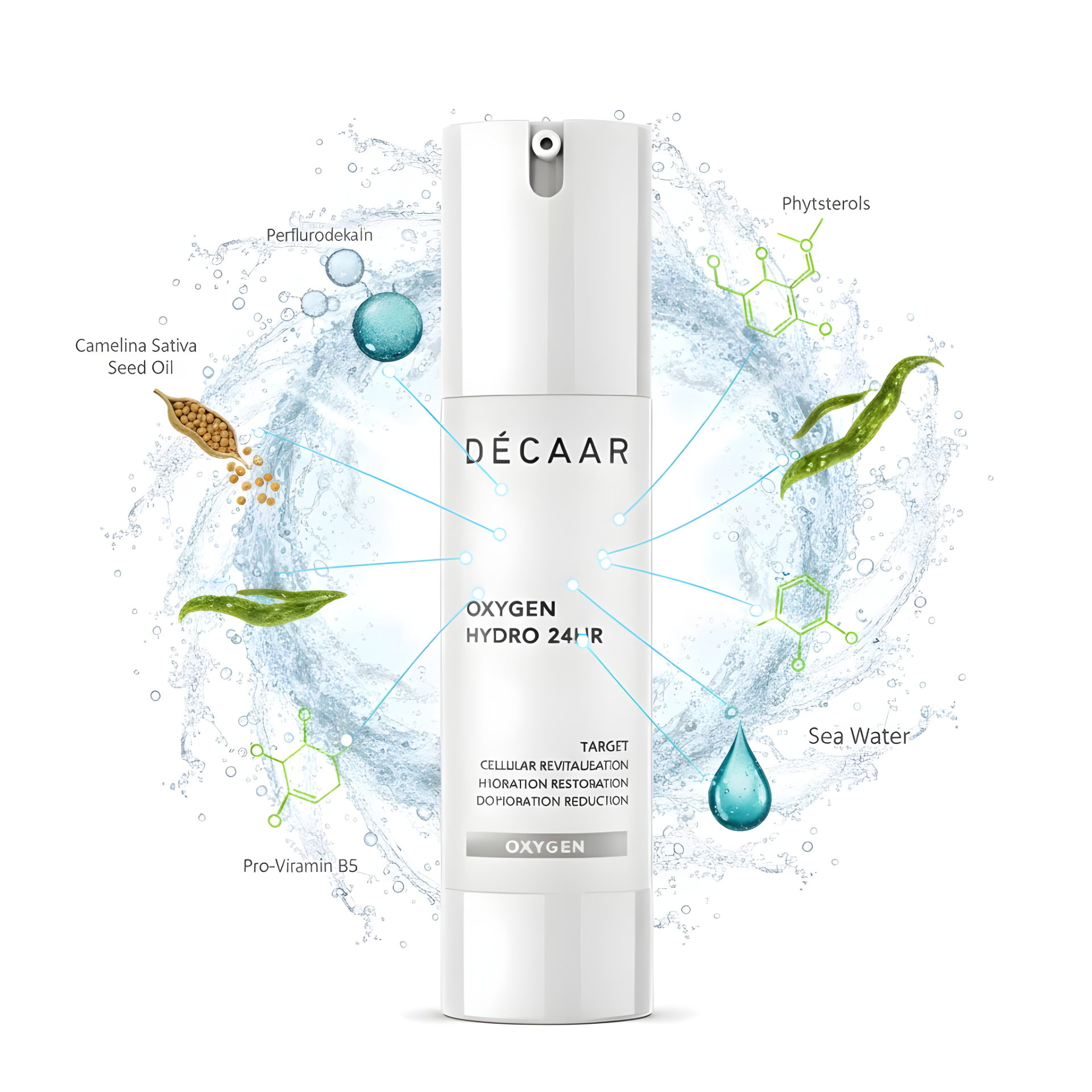 Der entscheidende Unterschied liegt im Sauerstoffträger Perfluordecalin, der Sauerstoff aktiv und direkt an die Hautzellen abgibt und sie so nicht nur mit Feuchtigkeit versorgt, sondern auch intensiv von innen heraus revitalisiert. Zusätzlich kombiniert es hochwirksame feuchtigkeitsspendende und antioxidative Inhaltsstoffe wie Hyaluronsäure und Vitamin E für eine umfassende Hautpflege und einen optimalen Schutz.